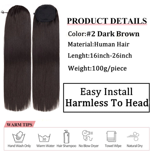 Brazilian Hair Ponytail Remy Human Hair Color #2, 16-26 Inch