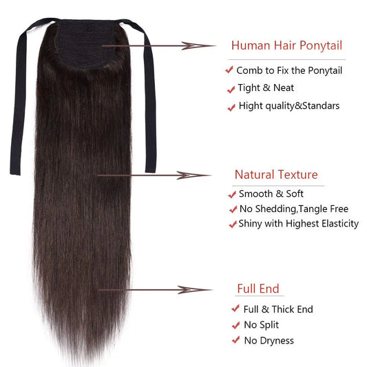 Straight Ponytail Extension Drawstring Ponytail 100% Human Hair Extension Natural Black